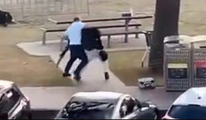 En medio del caos, un hombre detrás corrió entre los autos y llegó hasta uno de los tiradores por la espalda. El atacante no reaccionó, el civil lo tomó del cuello y lo derribó. Ambos forcejearon por unos segundos hasta que finalmente le arrebata el arma. El tirador, ya desarmado, se fue en ese momento.