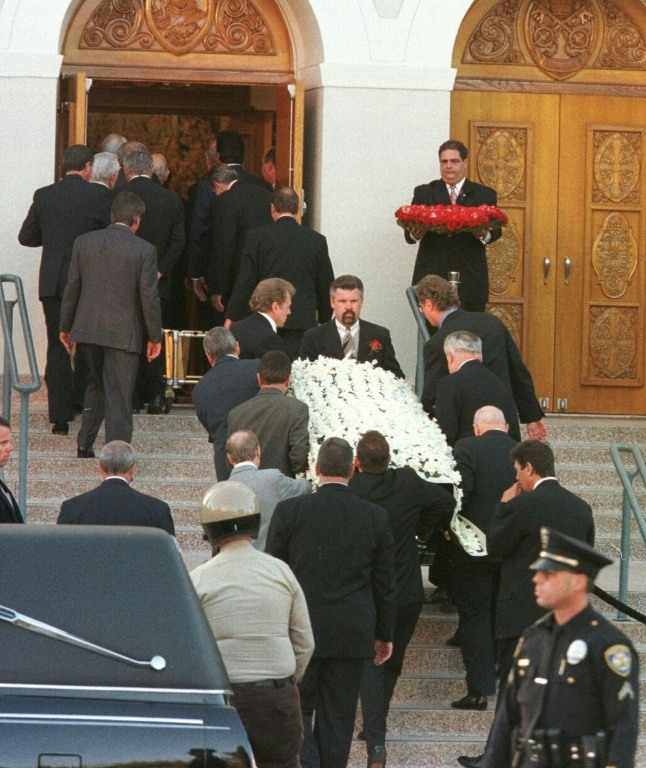 Sus exequias se llevan a cabo en la única iglesia católica de Beverly Hills; entre otros asisten Nancy Reagan, Kirk Douglas, Bruce Springsteen…