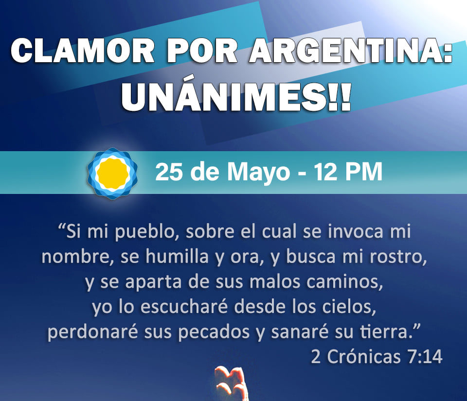 El 25 de Mayo es una de las fechas patrias más importantes en la historia de la República Argentina. Se trata de la conmemoración de la Revolución de Mayo de 1810. Ante esta celebración, miles de fieles se unieron en oración este medio día, clamando de forma unánime por la bendición de Dios sobre la República Argentina en este tiempo de pandemia.