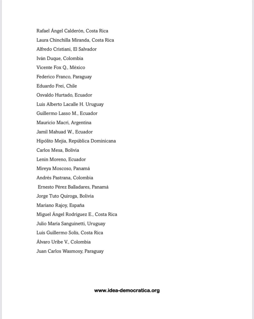 Entre los firmantes que figuran a favor de la declaración se encuentran también los expresidentes paraguayos Wasmosy, Franco y Abdo Benítez.