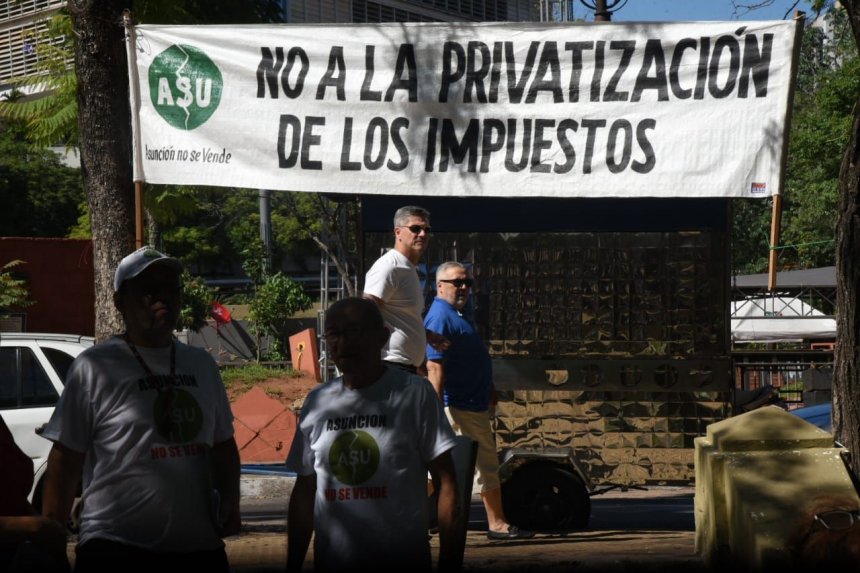 Un grupo de asuncenos protestaron y denunciaron el hecho de que se le dé ingreso a la empresa privada denominada Consorcio TX que fue adjudicada para cobro de impuestos, a pesar de contar con una orden judicial que lo prohíbe.