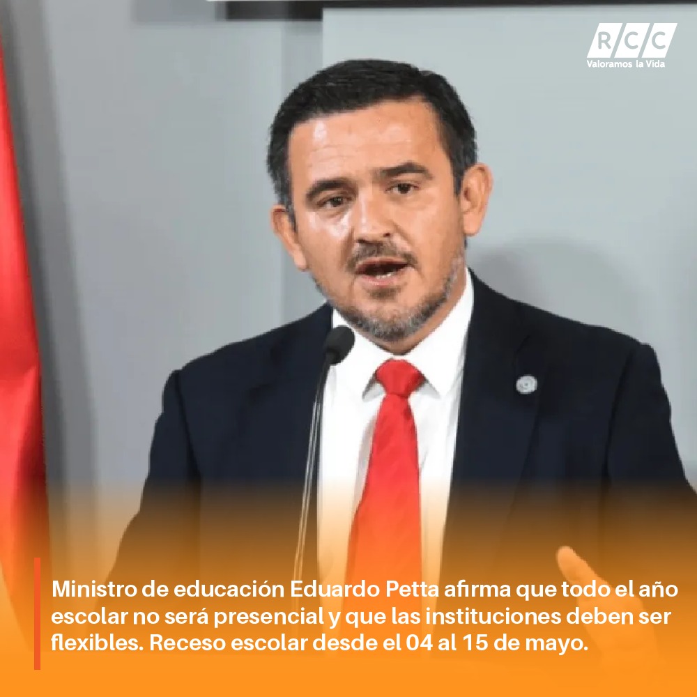 Filadelfia,RCC.- A su vez el Ministro de Educación Eduardo Petta anunció que se están realizando las planificaciones junto con el Ministerio de Salud para saber si habrán flexibilizaciones con los alumnos del bachillerato, especialmente los técnicos.