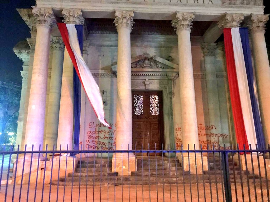 La Municipalidad de Asunción, la Secretaría de Cultura y el Ministerio del Interior emitieron comunicados de repudio a la manifestación ocurrida el sábado por la tarde en donde fueron pintadas las paredes del Panteón Nacional de los Héroes.