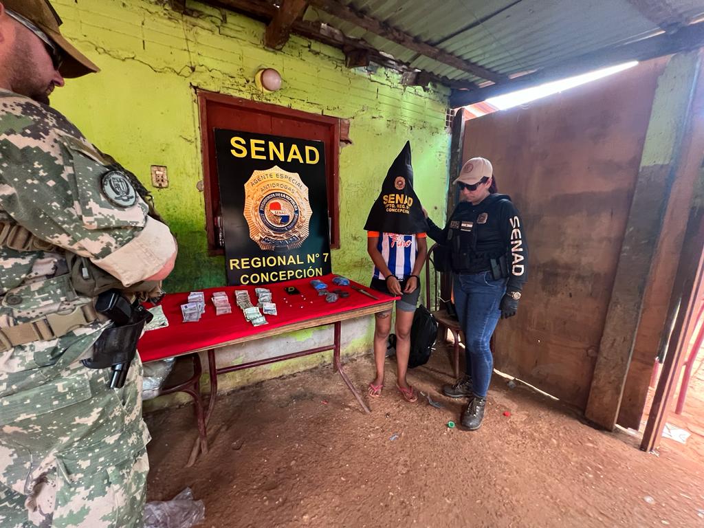 Durante la inspección del sitio, se incautaron 7 dosis de chespi y 12 gramos de marihuana. Además, entre las evidencias recuperadas se encontraron 998 mil guaraníes en billetes de baja denominación.