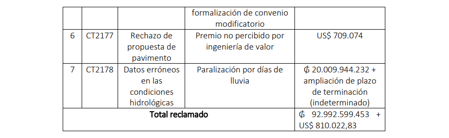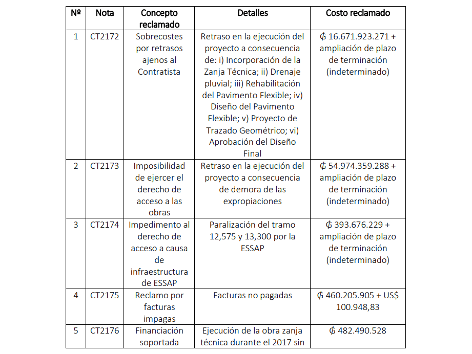 El día de hoy el MOPC notificó oficialmente a la empresa Mota Engil su decisión de rechazar los reclamos presentados el 13 de agosto de 2018 y que son los siguientes: