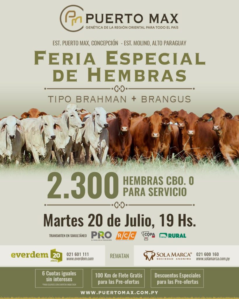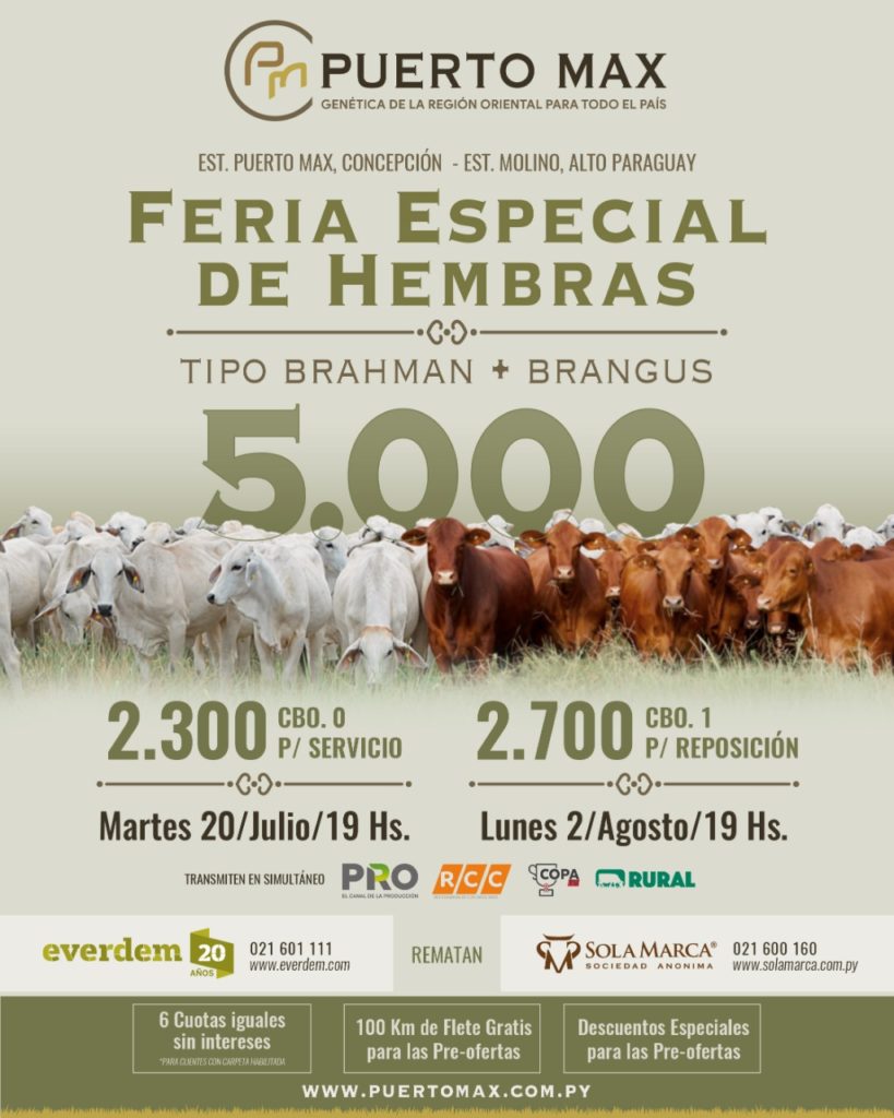 Norman Zavala, encargado de la Unidad de Remates y Certificaciones de Everdem S.A., destacó que en total en ambas ferias estarán en subasta 5.000 hembras tipo Brahman y Brangus, son animales provenientes de las estancias Puerto Max (Concepción) y Molino (Alto Paraguay), con muchos años de apuesta en la calidad genética.