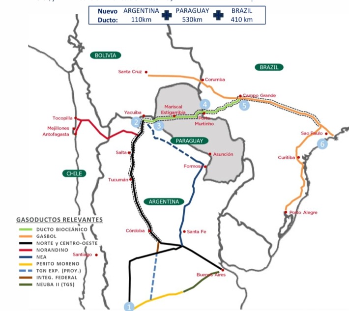 El proyecto, denominado Corredor Energético Bioceánico, permitirá enlazar los yacimientos argentinos de Vaca Muerta con el mercado industrial de São Paulo, aprovechando un trazado natural a lo largo de la carretera bioceánica que cruza el Chaco paraguayo. El gasoducto unirá, además, las costas del Pacífico y del Atlántico, reforzando la integración energética sudamericana.