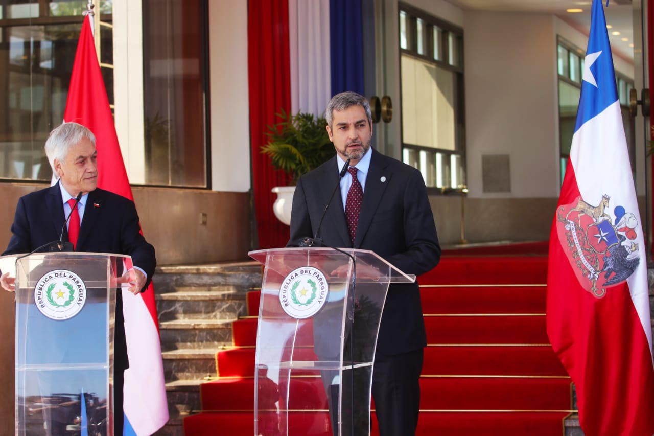 Filadelfia, RCC.- Los presidentes Abdo Benítez y Piñera se reunieron este miércoles en el Espigón Presidencial del Aeropuerto Silvio Pettirossi, donde posteriormente dieron una declaración conjunta. Abdo agradeció a Piñera por su presencia y el gesto de solidaridad de su Gobierno.