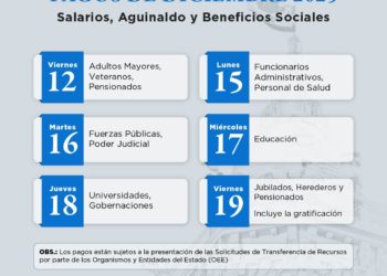 Mañana, martes 16, es el día de las Fuerzas Públicas (policías y militares) y funcionarios del Poder Judicial. El miércoles 17 les tocará el turno a los del Ministerio de Educación y Ciencias (MEC), mientras que el jueves 18 recibirán sus haberes los funcionarios de las Universidades y las Gobernaciones.