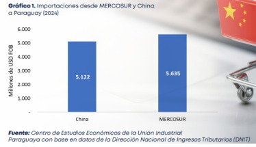 De acuerdo a la investigación, durante el año 2024, el valor total de las importaciones desde Argentina, Brasil y Uruguay fue un 10% superior al de las importaciones provenientes de China Continental. Señala que, en el caso de China, aproximadamente el 60% de las importaciones de Paraguay se concentraron en maquinaria y aparatos eléctricos, calderas, vehículos automotores y sus partes. Sin embargo, también se registró un volumen significativo de materias primas destinadas a la industria.