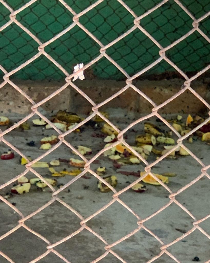 La internauta mencionó que, ante el intenso calor, los animales no contaban con suficiente agua en un ambiente sumamente hostil, los monos en el sol soportando un calor de casi 45 grados en el cemento caliente. Por otra parte, expresó que la comida estaba llena de moscas, y los animales están agitados por las elevadas temperaturas.