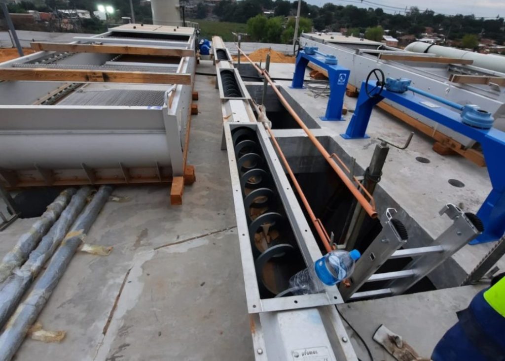 Estos equipos electromecánicos –adquiridos de Alemania, especialmente para esta obra-, corresponden al sector donde las aguas residuales serán liberadas de todo tipo de basura –plásticos y otros materiales- presentes en ellas.