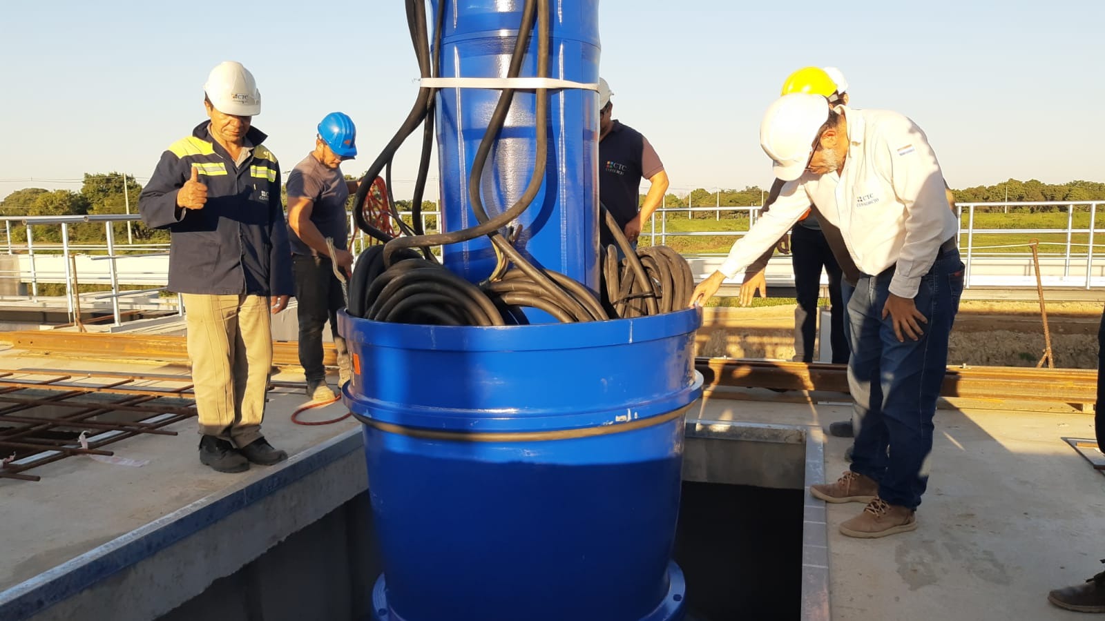 Cada una de estas bombas de la marca alemana KSB tiene una capacidad de caudal de 4.9 m³ por segundo, equivalente a la carga de una piscina domiciliaria en dos segundos. Su altura de elevación es de 7,5 metros con una potencia de 350 kw, según detallaron desde el consorcio CTC, responsable de las labores.