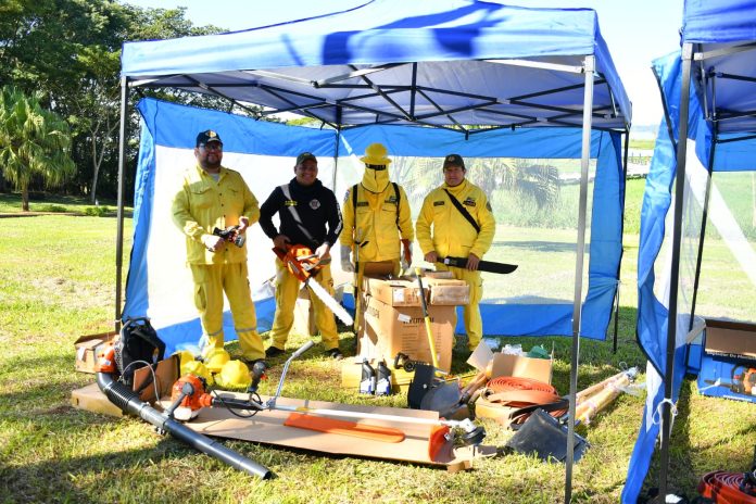 Además de 13 desmalezadoras motorizadas con accesorios completos, 13 sopladores motorizado tipo mochila con accesorios completos, 13 generadores de energía con rueda y 13 tiendas de campaña para puesto de comando.