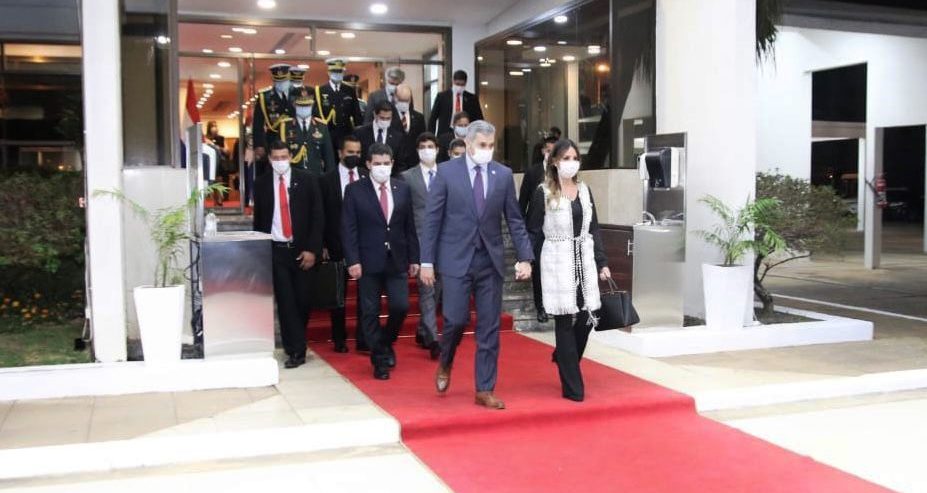 La ceremonia de despedida al gobernante paraguayo con motivo de este viaje tuvo lugar en el Espigón Presidencial del Aeropuerto Internacional «Silvio Pettirossi».