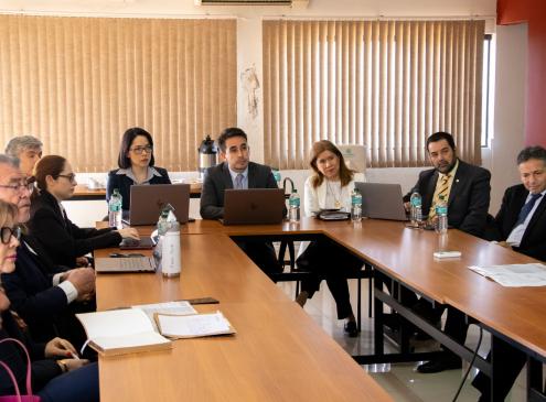 El encuentro con los magistrados tuvo lugar en el Edificio Ybaga, en las oficinas del Viceministerio de Economía y Planificación (VEP). La presentación estuvo a cargo del viceministro, Felipe González Soley, acompañado de la gerente de Desarrollo Económico del VEP, Liz Coronel.