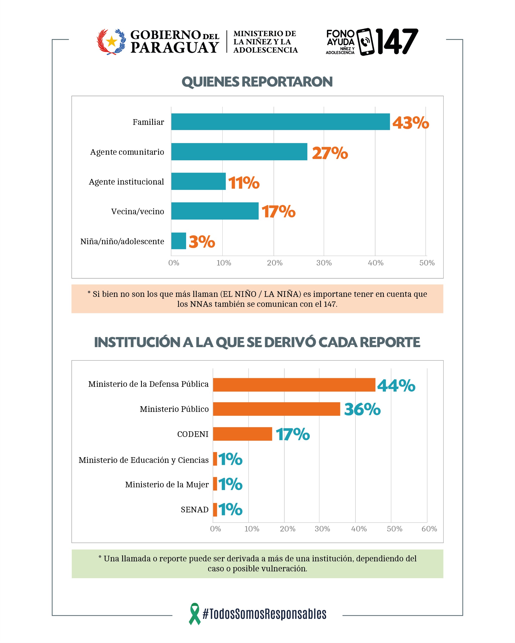 Desde el MINNA recuerdan que el 147 Fono Ayuda no solo es una línea de denuncias, sino también un servicio de asesoramiento y contención emocional, que articula respuestas con instituciones como la Policía Nacional, el Ministerio Público y el Ministerio de la Defensa Pública.
