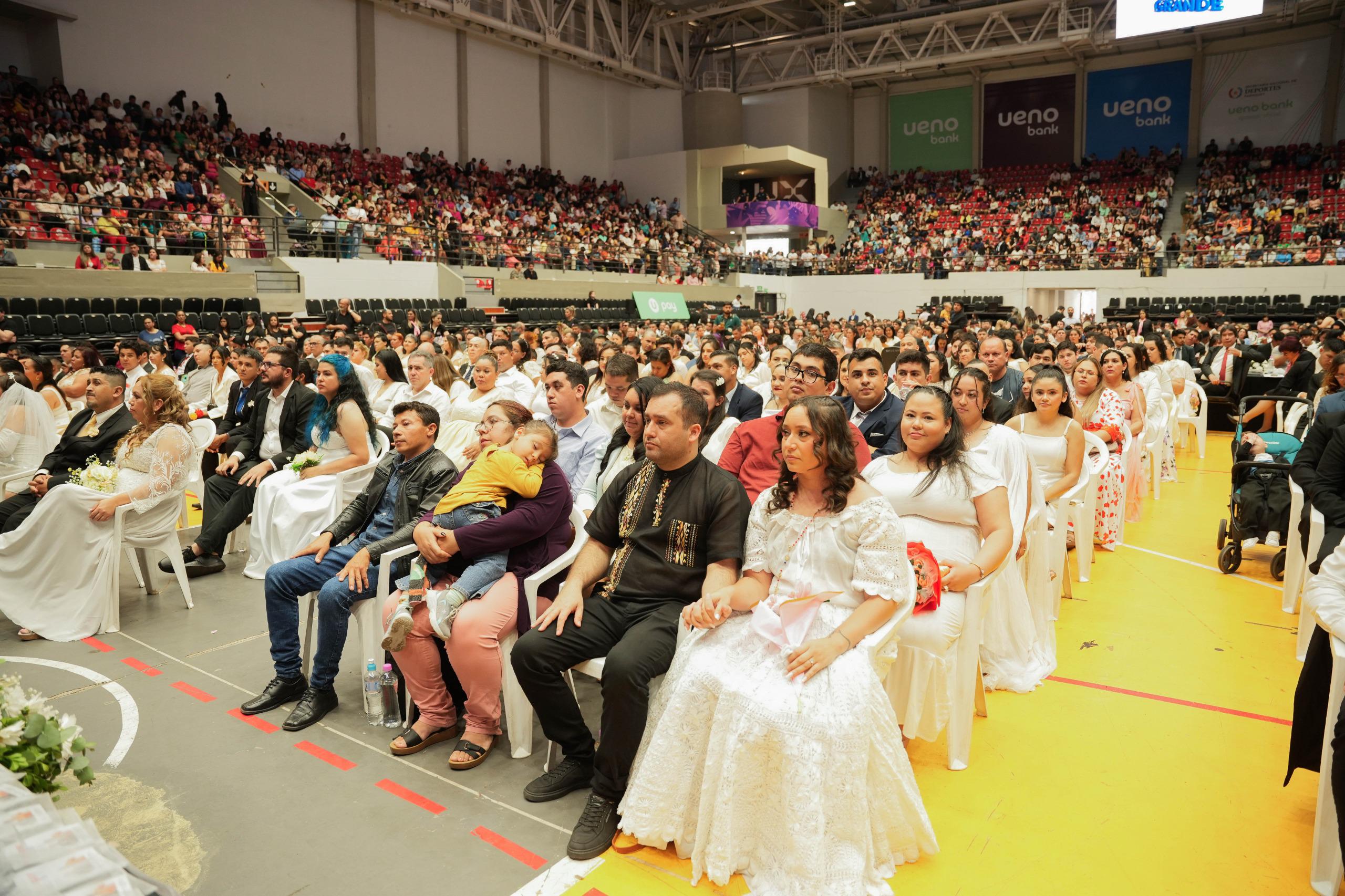 La mañana se tiñó de alegría, música y esperanza en la Arena de la Secretaría Nacional de Deportes, donde más de 4 mil personas se congregaron para presenciar un acontecimiento histórico: la unión matrimonial de más de 600 parejas en una emotiva ceremonia colectiva.