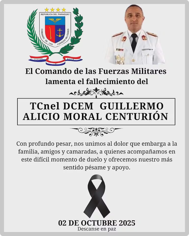 De acuerdo a los datos, un violento ataque a plena luz del día acabó este jueves con la vida del Tte. Cnel. Guillermo Alicio Moral Centurión, de 44 años, estudiante del décimo semestre de la Facultad de Derecho de la Universidad Nacional de Asunción (UNA). Los datos policiales señalan que Moral Centurión fue interceptado alrededor de las 16:20, cuando abordaba su camioneta en la zona de la Facultad de Derecho. Dos hombres a bordo de una motocicleta lo sorprendieron y efectuaron al menos tres disparos antes de darse a la fuga hacia la avenida Santísima Trinidad. Bomberos voluntarios intentaron asistirlo, pero finalmente confirmaron su deceso en el lugar.