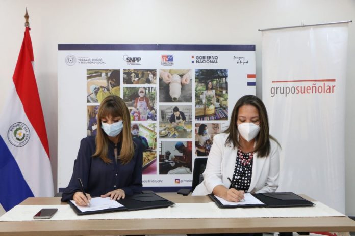 Durante un acto realizado este lunes en la sede del Viceministerio de Empleo, la ministra de Trabajo, Carla Bacigalupo y la jefa del área de Sostenibilidad y Asuntos Corporativos de YP Sociedad Anónima (Grupo Sueñolar), Clara Armoa, firmaron un convenio de compromiso para realizar las actividades en forma conjunta.