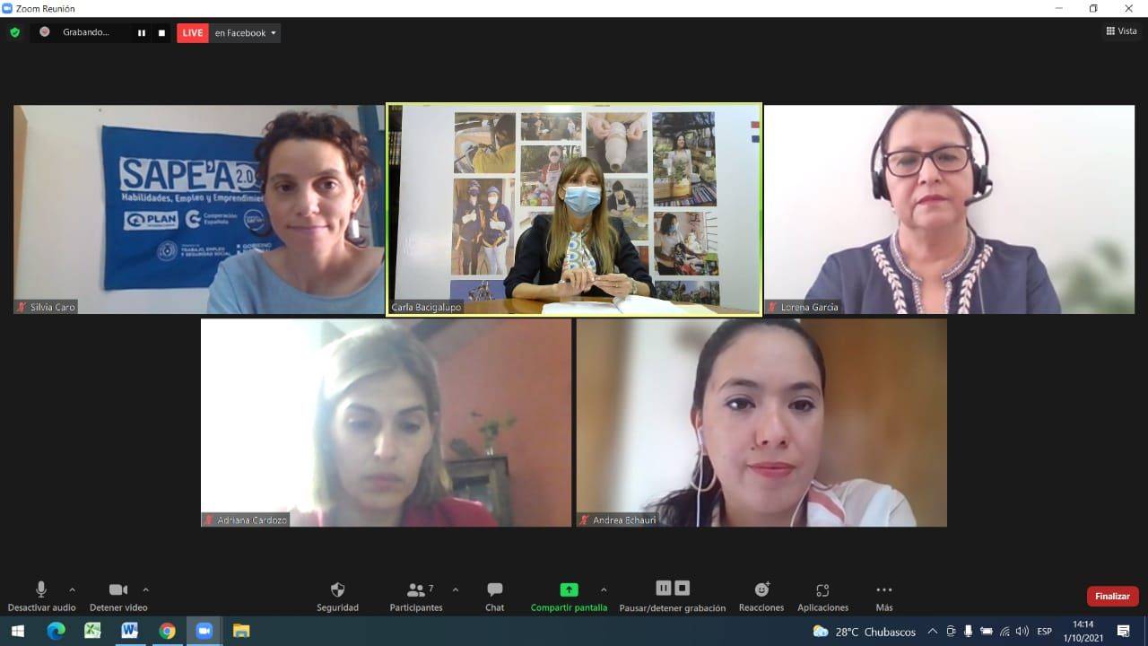 En la tarde de hoy se realizó el acto en forma virtual de cierre de la convocatoria del primer concurso dirigido solo a mujeres vulnerables de las zonas de intervención del proyecto Sape´a 2.0. La recepción de postulaciones fue hasta el día 28 de septiembre y ahora se están evaluando las diferentes propuestas de negogios. Las ganadoras serán anunciadas el próximo 15 de octubre. Participaron del evento a través de la plataforma Zoom, la ministra de Trabajo, Carla Bacigalupo; Lorena Galdámez, directora de Plan International Paraguay, entre otras autoridades.
