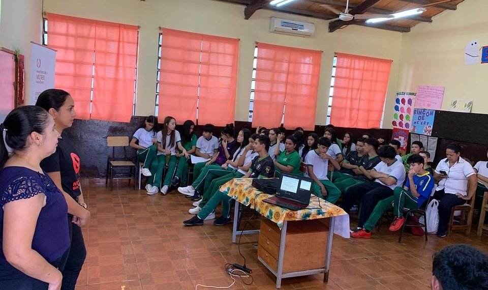 En el taller se desarrollaron los conceptos y tipos de violencia, así también se realizó una dinámica con el grupo para identificar alguna señal de violencia en el noviazgo, las redes sociales actuales y las señales que puede darse a través de ella, instituciones a donde se puede acudir en casos de violencia, socialización de los servicios que brinda el Ministerio de la Mujer, la línea 137 y el albergue. Participaron un total de 53 estudiantes, 29 mujeres y 24 varones, la charla estuvo a cargo de Yenny Acosta, Abogada del Centro Regional de Pedro Juan Caballero.