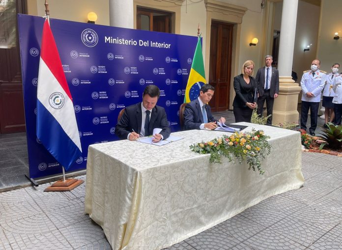 Firmaron el documento los ministros del Interior de Paraguay, Federico González, y de Justicia y Seguridad Pública de Brasil, Anderson Torres.