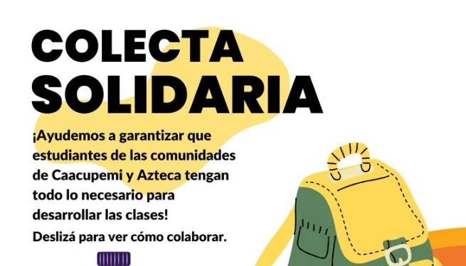 Para esto, hacen un llamado a todos los que quieran participar de la Colecta Solidaria, todos los interesados pueden donar cuadernos universitarios, lápices de papel, mochilas, cartucheras, hojas blancas, carpetas, pinceles, cartulinas, lápices de colores, papel sulfito, témpera y útiles escolares en general.