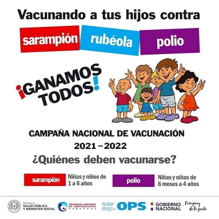 El Ministerio de Salud Pública, a través de la Campaña Nacional contra el Sarampión, Polio y Rubéola tiene como meta vacunar al 95% de la población objetivo, en al menos 80% de los 255 distritos del territorio nacional.