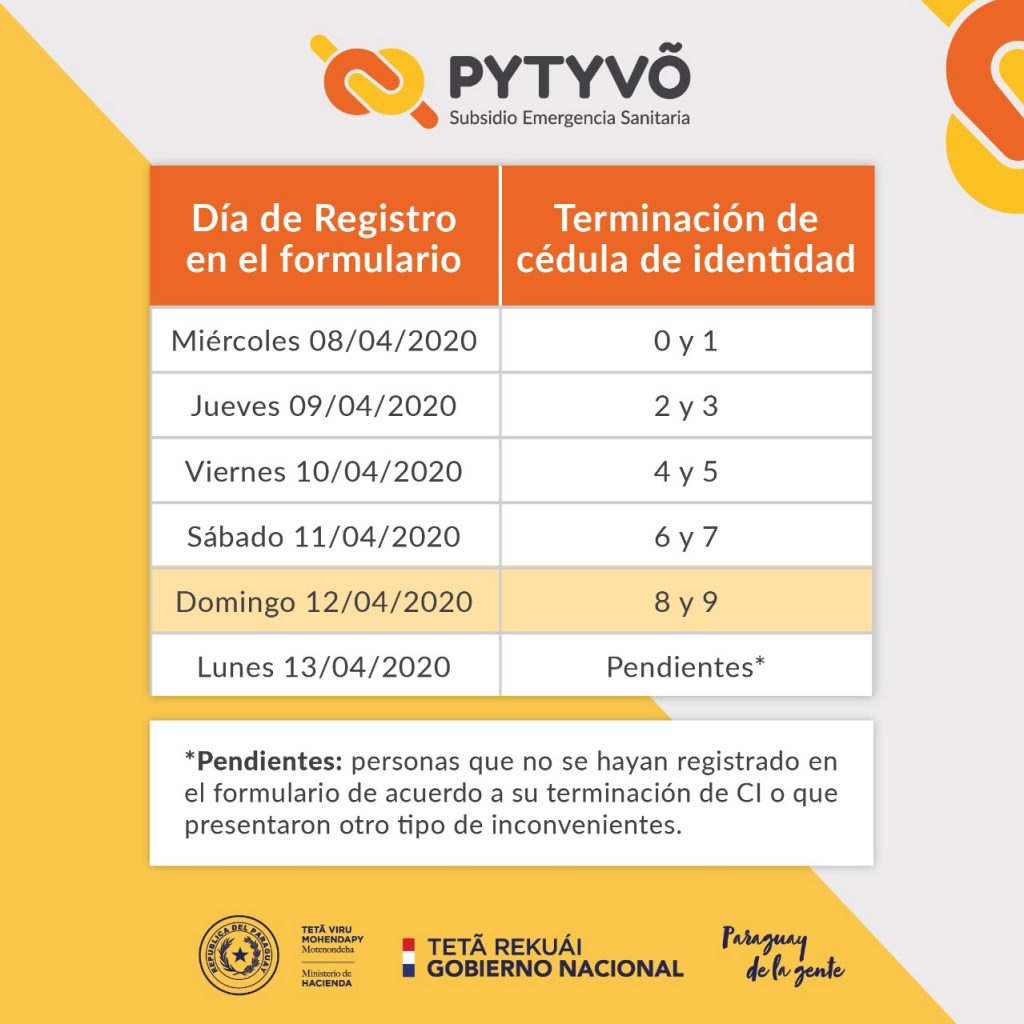 Las plataformas de inscripción al programa #Pytyvõ que están activas son: por medio de la página web https://pytyvo.hacienda.gov.py/o bien descargando la App en https://play.google.com/store/apps/details?id=py.gov.hacienda.kyc.