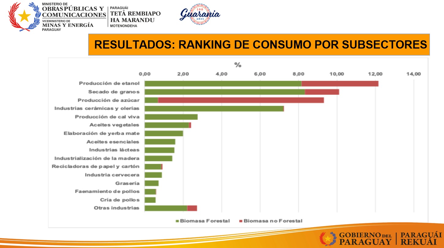 El informe, cuya elaboración fue financiada por el Banco Interamericano de Desarrollo (BID), revela que el consumo total de biomasa asciende a 6,2 millones de toneladas por año, siendo el sector industrial el principal consumidor, con el 57% del total. El 28,8% corresponde al uso residencial y el 14,2% a la producción de carbón vegetal.