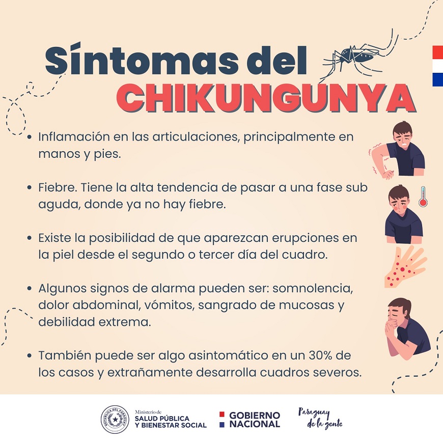 El primer caso autóctono de chikungunya en Paraguay fue notificado en el 2015. En el año 2016 se concentraron en el área metropolitana (Asunción y departamento Central) y en el año 2018 en el departamento de Amambay.