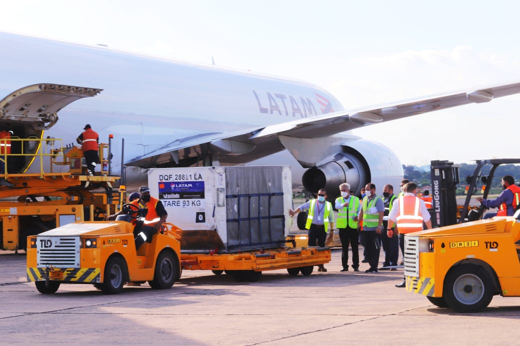 El Ministro de Salud, Julio Borba, y el representante de la Organización Panamericana de la Salud (OPS/OMS), Luis Escoto, formaron parte de la comitiva que recibió las vacunas en el Aeropuerto Silvio Pettirossi. Para finales de este mes se esperan otras 64.000 dosis para completar 100.000 adquiridas por el mecanismo de la Organización Mundial de la Salud (OMS).
