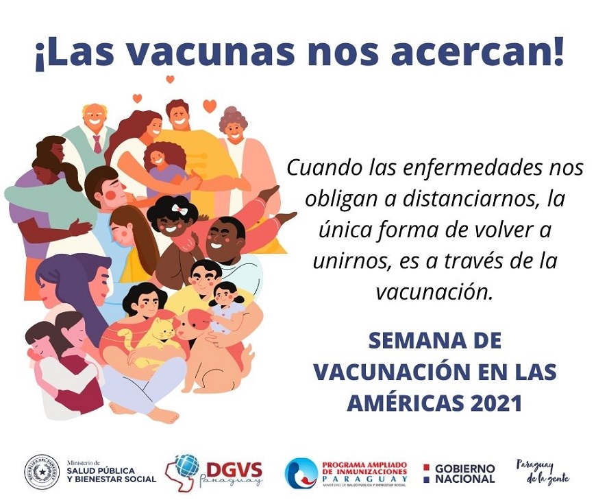 Entre el 24 y el 30 de abril del 2021, la Organización Panamericana de la Salud (OPS) y sus socios celebrarán la 19ª Semana de Vacunación en las Américas bajo el lema «Las vacunas nos acercan. #Vacunate».