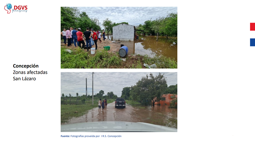 El Centro Nacional de Información y Vigilancia de Salud informa que ya suman cinco las regiones del país afectadas por las inundaciones, debido a las intensas precipitaciones registradas en los últimos tiempos. Estos son: Alto Paraguay, Concepción, Pdte. Hayes, San Pedro y Asunción.