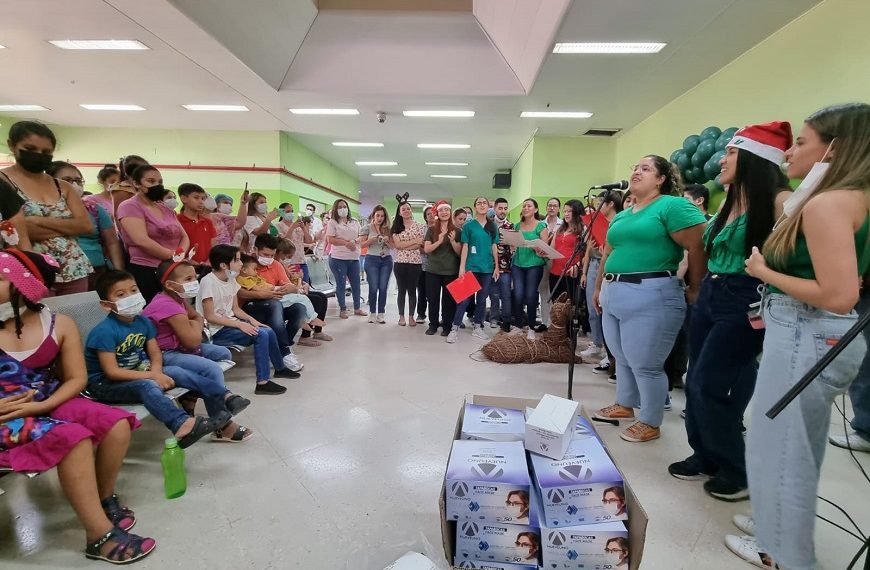 El silencio en la sala de espera del hospital fue interrumpido por las primeras notas musicales que interpretaron los médicos del hospital, cuatro canciones en total: Din Din Don, El Tamborilero, Dos trocitos de Madera y Ven a cantar. Niños y adultos; visitantes y trabajadores del Acosta Ñu, unidos al coro principal acompañaban al coro con cantos, palmas y bailes. Un poco de festividad en el sitio donde muchos niños pasarán el 25 de diciembre.