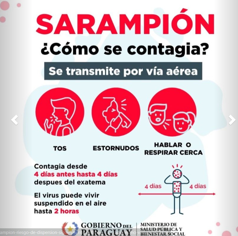El sarampión es una enfermedad viral de rápida propagación que se transmite a través de microgotas expulsadas al hablar, toser o estornudar, las cuales pueden permanecer suspendidas en el aire hasta por dos horas.