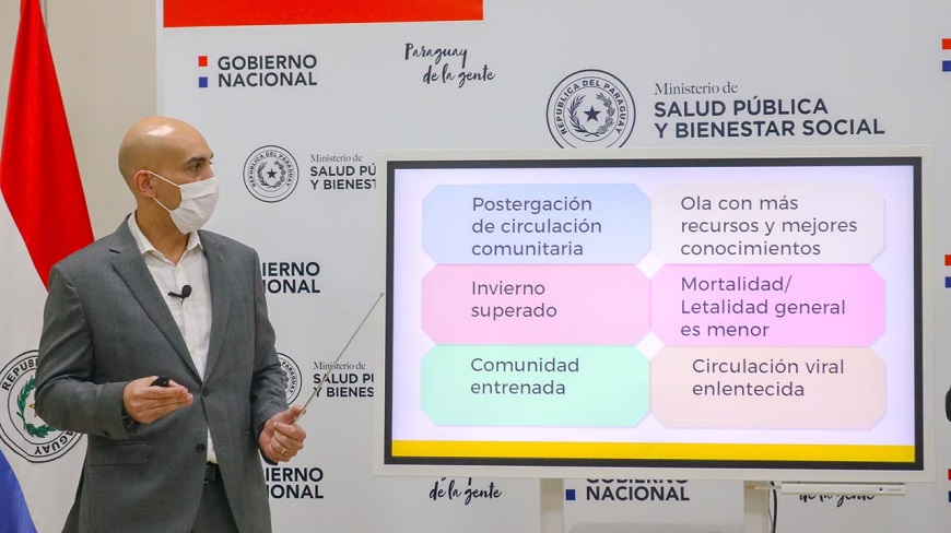 En cuanto a los datos epidemiológicos señaló que Paraguay se encuentra con números favorables. La tasa de mortalidad ubica a nuestro país en el décimo tercer lugar. “También hemos registrado en las últimas 4 semanas una estabilización de los casos, un enlentecimiento primero de la aceleración y un descenso, pero lo que buscamos es que esto se sostenga, de ninguna manera esto significa que no tenemos la amenaza del COVID-19”, expresó el ministro.