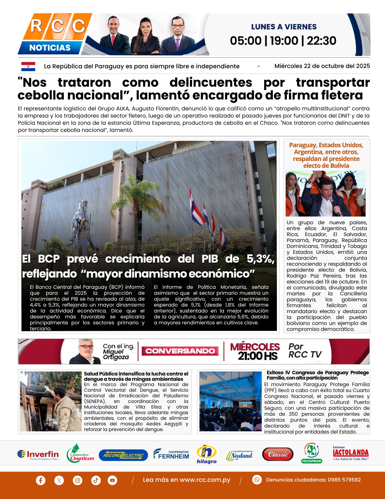 1.- RCC SA no se responsabiliza por los comentarios u opiniones hechos por los lectores.