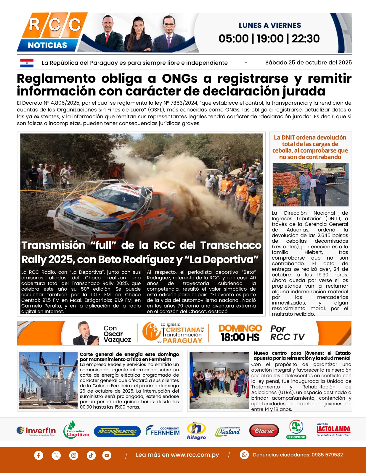 1.- RCC SA no se responsabiliza por los comentarios u opiniones hechos por los lectores.