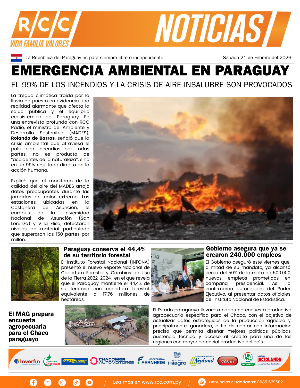 1.- RCC SA no se responsabiliza por los comentarios u opiniones hechos por los lectores.